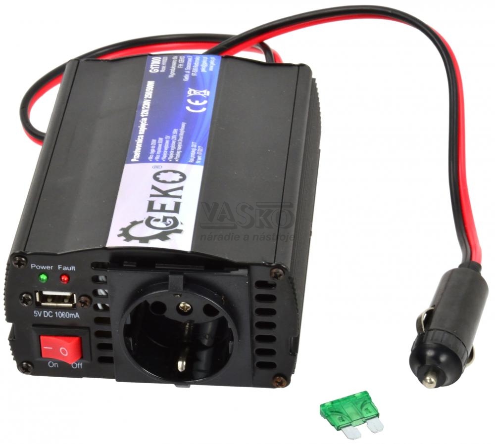 Menič napätia, vstup 12V/ výstup 230V, trvalý výkon 350W nárazový výkon 700W, GEKO