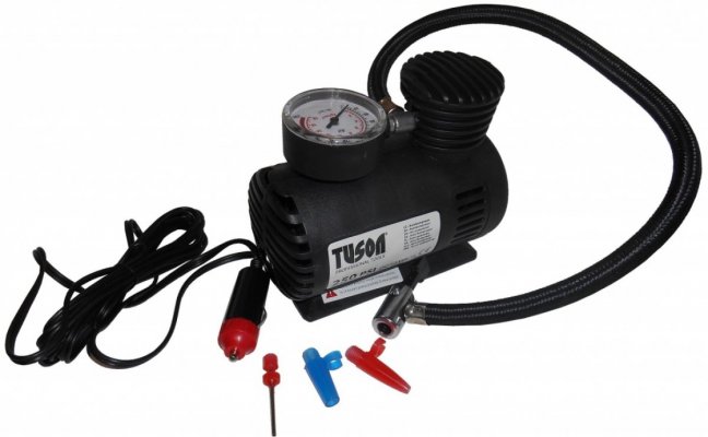 Autokompresor Tuson s maximálnym tlakom do 18 barov a výkonom 120 W vhodný pre použitie v domácnosti. Je vhodný pre nafukovanie kolies, hračiek, lôpt, matracov a pod.