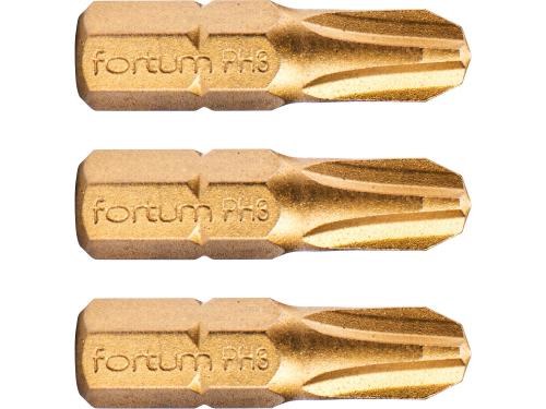 Bit krížový 3ks, PH 3x25mm, S2, FORTUM