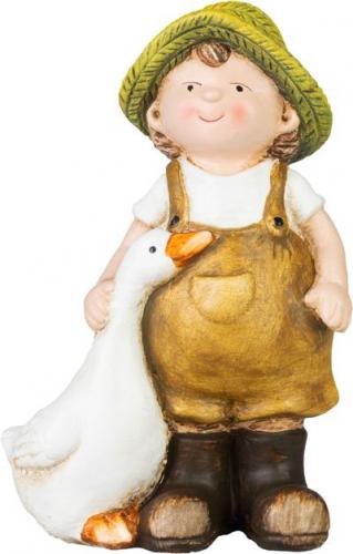 Dekorácia MagicHome, Chlapček s húskou v hnedom oblečení, keramika, 6,5x12,5x19 cm