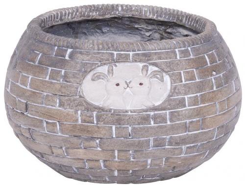 Dekorácia MagicHome, Kvetináč s mozaikou, hnedý, so zajačikmi, keramika, 32x27x20 cm