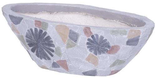 Dekorácia MagicHome, Kvetináč s mozaikou, sivý, široký, keramika, 40,5x19x14 cm