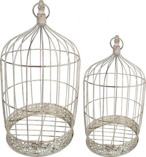 Dekoračné klietky MAGICHOME sú nádherným doplnkom pre milovníkov vintage štýlu. Tento set obsahuje dve kovové klietky v rozmeroch 23 x 23 x 41 cm a 18 x 18 x 34 cm v odtieňoch bielej s jemnou patinou, čo im dodáva antik vzhľad. Ich detailne prepracovaný dizajn s ornamentálnym lemovaním na spodnej časti vytvára romantický a elegantný efekt.