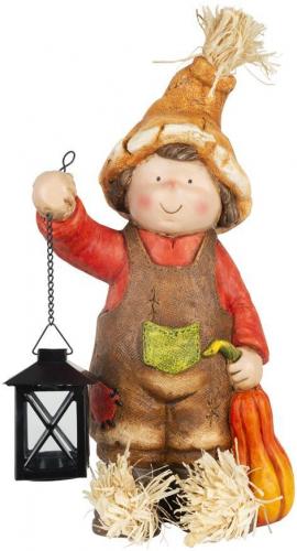 Dekorácia MagicHome Nature, Chlapček s lampášikom, keramika, 23,50x16x40,50 cm