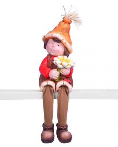 Dekorácia MagicHome Nature, Chlapček sedí s kvetom, keramika, 17x16,50x32 cm