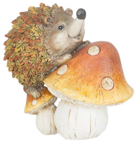 Dekorácia MagicHome Nature, Ježko na hríbe, keramika, 31x21x49 cm