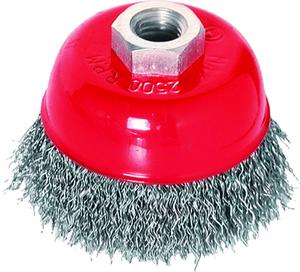 Drôtená kefa hrncová 100 mm pre uhlové brúsky - na kov, na odstránenie hrdze, farieb a lakov - Priemer : 100 mm - Upínanie : M14x2 - Hrúbka drôtu : 0,3 mm - drôt : vlnitý - Max.otáčky 11 000 ot./min