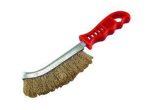 Extol Craft - oceľová kefa ručná, kútová, plastová rukoväť, pomosadzená - dĺžka 240mm - vlnitý drôt 0,3 mm - materiál Fe