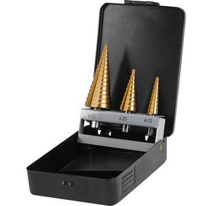 EXTOL CRAFT vrtáky stupňovité, sada 3ks, TiN 20090 4-12/1mm 4-20/2mm 4-32/2mm titánová povrchová úprava