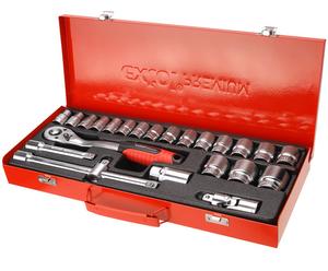 Kľúče nástrčné 1/2", sada 24ks, kovový kufrík, CrV račňa 1/2“ 45 zubov, kovový kufor ná s t rč n é k ľ úče 10 -11-12-13-14 -15 -16 -17-18 -19 -20 -21-2 2-2 3-24 -27-30 -32mm nástrčný kľúč na sviečky 21mm, predlžovací nadstavec 125mm a 250mm, univerzálny kardan, adaptér 1/2“ vonkajší štvorhran na 3/8“ vnútorný štvorhran