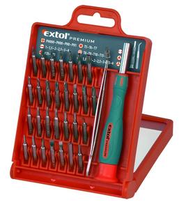 (-) 1-1,5-2-2,5-3-4mm, PH 000-00-0-1, PZ 0-1, HEX 1,3-1,5-2-2,5-3-3,5-4mm, T 5-6-7, TTa 8-9-10-15-20, SD 2,6, TW 3, triangle 3, nástavec magnetický 115mm, pinzeta, CrV