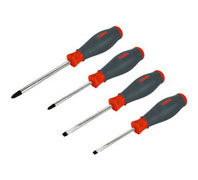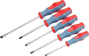 EXTOL PREMIUM skrutkovače, sada 5ks (-) 4x75mm, (-) 5x100mm, (-) 6x150mm, PH 1x100mm, PH 2x100mm - Magnetický hrot - Driek z kvalitnej CrV ocele tvrdený na HRC 51-54 - Ergonomicky tvarované