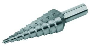 Stupňovitý vrták je vhodný pre vŕtanie kruhových otvorov do zliatinových aj neslitinových oceľových plátoch, rourách a profiloch do hrúbky steny 4mm. Možno ho použiť aj na vŕtanie do dreva a plastov, napríklad do plexiskla.