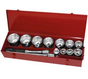 FORTUM kľúče nástrčné, sada 15ks 4704012 zloženie: 1 "hlavica 36-41-46-50-55-60-65-70-75-80mm; 1 "račňa 550mm, 24 zubov; predlžovacie nástavce 1 "x200 +400 mm; 1 "vratidlo; vyrobené z kvalitnej CrV ocele; balené v kovovom kufri.