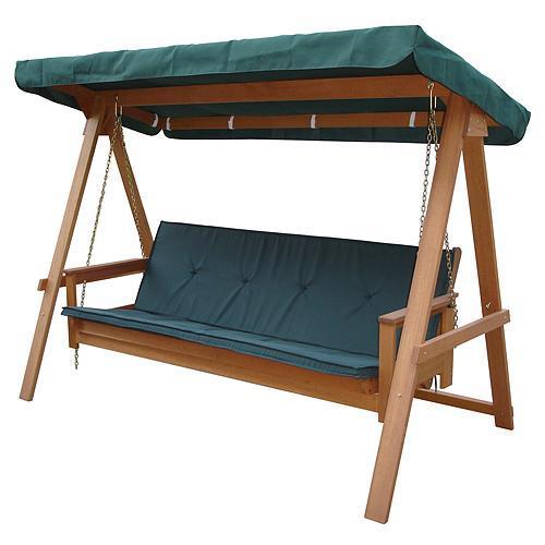 Drevená hojdačka ponúka príjemný oddych a relax priamo vo vašej záhrade. Celá konštrukcia hojdačky je vyrobená z pevného a kvalitného dreva, vďaka čomu ponúka nosnosť až 300 kg. Hojdačka je krytá strechou vyrobenou z materiálu odolného voči vonkajším vplyvom, čím vás chráni pred páliacim slnkom rovnako ako aj pred dažďom. Samotná hojdacia časť je závesná. Na vrchnom konštrukčnom tráme sa nachádzajú dva záchytné háky, na ktoré sa upevnia retiazky hojdačky. Na sedacej časti sa kvôli väčšiemu pohodliu nachádza mäkký sedací aj opierací matrac. Všetky látkové časti hojdačky sú krásnej zelenej farby, čím skvelo ladia k drevu. Rozmery sú 235 x 115 x 180 cm. Hojdačku je potrebné umiestniť na rovný povrch, inak hrozí riziko prevrátenia.