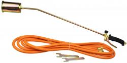 Ľahko použiteľný univerzálny plynový horák na propán-bután s hadicou na fľašu. Použitie: - spájkovanie - vypaľovanie - zváranie - zmršťovanie povlakov z teplom zmrštiteľných materiálov - lepenie za tepla - zahrievanie - rozmrazovanie - ohýbanie a tvarovanie termoplastov Technické parametre: - 3m dlhá vystužená hadica - priemer trysky: 60mm - teplota plameňa: 1850°C - tepelná účinnosť: 58kW - spotreba plynu: až 7200g/h