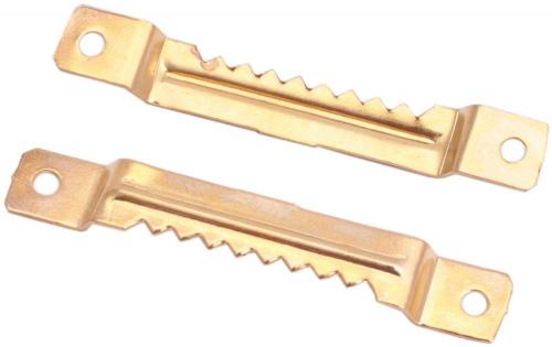 Držiak na rám obrazu (uško): 55 x 8,5 mm. Časť ohnutá (s hrebeňom) 38mm. Vzdialenosť medzi stredmi otvorov 50mm. Priemer otvoru pre skrutku / klinec - 3,5mm.