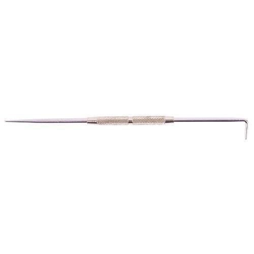 - rysovacia ihla pozostáva z rovnej a 90° ohnutéj ocelovej špicky, ktoré sú prepletené do vrubkovaného tela