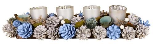 Ikebana MagicHome, prírodná, strieborné poháriky, L-45 cm, modrá, adventný