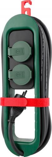 Predlžovací kábel FS0701 v čiernej farbe zabezpečí prívod elektrickej energie až do dĺžky 4,9 metrov. Vhodný do exteriéru vďaka triede ochrany IP44. Vďaka 2 zásuvkám s krytom umožňuje pripojenie viacero zariadení naraz. Disponuje integrovaným návinom káblu. Praktický hák na zavesenie kdekoľvek potrebujete. Maximálna záťaž: 16 A. Priemer vodiča: 1,5 mm2.