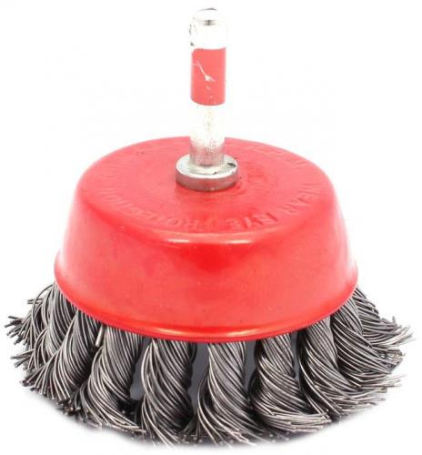 Kartáč hrnčekový vrkočový 75 mm so stopkou pre prácu s vŕtačkou . Lakované oceľové telo.