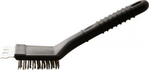 Kefa na čistenie grilu Strend Pro uľahčí odstránenie prischnutej špiny a zvyškov jedla z grilovacieho roštu. Na očistenie hrubej špiny slúži škrabka v prednej časti. Dodatočné nečistoty sa následne odstránia kefou. Štetiny kefy sú vyrobené tak, aby nepoškriabali a neznehodnotili grilovací rošt. Rozmery: 5x5,5x21,5 cm.