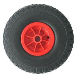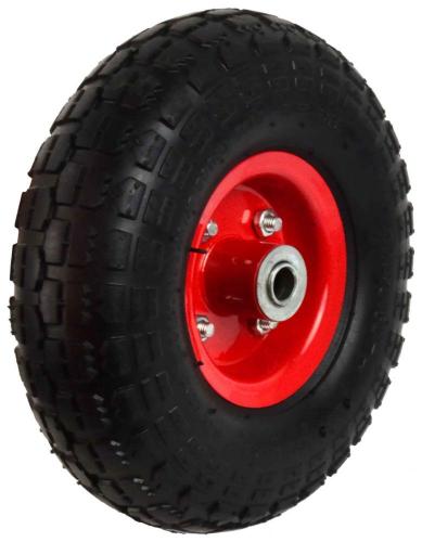 Nafukovacie koleso 2PR s maximálnym zaťažením do 136 kg. Odolný práškový lak a kovový disk poskytuje zvýšenú stabilitu. Celok je vyrobený z vysoko kvalitných materiálov. Technické špecifikácie: Vonkajší priemer kolesa: 260 mm Šírka pneumatiky: 81 mm Vnútorný priemer kolesa:125 mm Šírka náboja: 79 mm Upínací otvor : 16 mm Materiál: guma, oceľový disk Nosnosť: 136 kg tlak: 2,1 bar / 30 psi ventil: automobilový