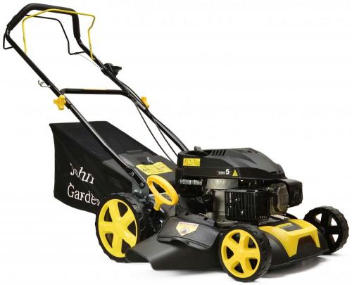 Benzínová kosačka John Gardener na trávu s pohonom.