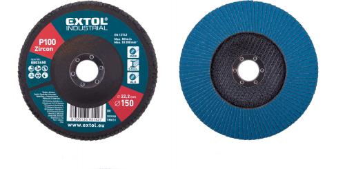 Kotúč lamelový šikmý, zirkón, 150x22,2mm, P100, 150mm, P100, EXTOL INDUSTRIAL