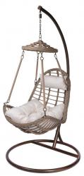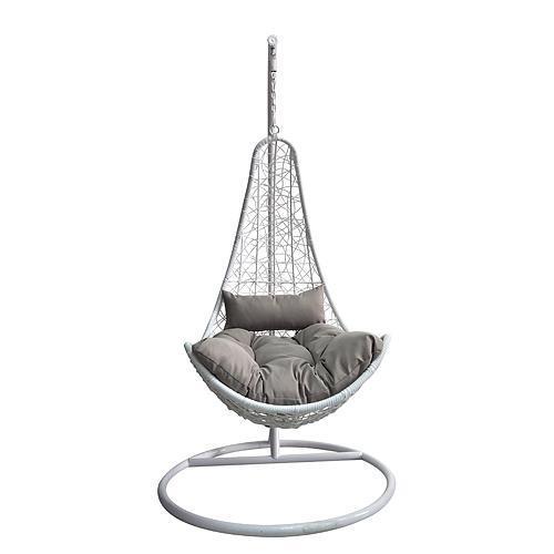 Ratanové kreslo je bielej farby a hodí sa do každej domácnosti. Hojdacie kreslo je zavesené na príslušnej kovovej konštrukcii, ktorá poskytuje dostatočnú pevnosť pre hojdanie. Kov použitý na hojdačku má rozmery 40 x 3 mm. Nosnosť kresla je 120 kg a jeho rozmery sú 125 x 80 x 70 cm. Výška celej konštrukcie, spolu so stojanom na zavesenie kresla je 195 cm. Sedacia časť je vyvýšená, čím ponúka pohodlnú opernú časť. Hojdačka je doplnená o bavlnenú podušku a vankúše šedej farby.