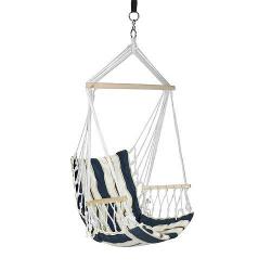 Ratanové kreslo je bielej farby a hodí sa do každej domácnosti. Hojdacie kreslo je zavesené na príslušnej kovovej konštrukcii, ktorá poskytuje dostatočnú pevnosť pre hojdanie. Kov použitý na hojdačku má rozmery 40 x 3 mm. Nosnosť kresla je 120 kg a jeho rozmery sú 125 x 80 x 70 cm. Výška celej konštrukcie, spolu so stojanom na zavesenie kresla je 195 cm. Sedacia časť je vyvýšená, čím ponúka pohodlnú opernú časť. Hojdačka je doplnená o bavlnenú podušku a vankúše šedej farby.