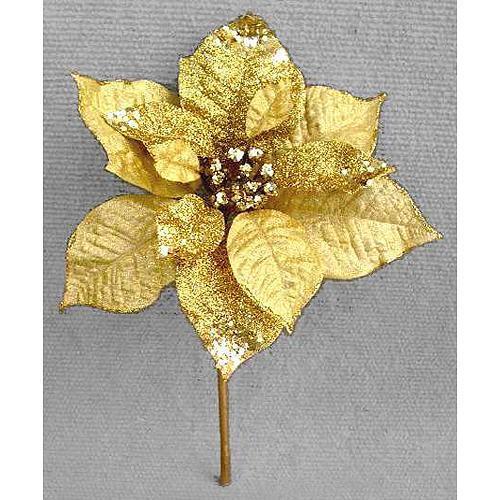 Kvet MagicHome Vianoce Poinsettia GlitterGold, zlatá, stonka, 23x20 cm, bal. 6 ks