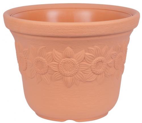 Klasický kvetináč Sunny s dekorom slnečníc v terakota farbe skrášli Váš dom. Rozmery: 40x30,7 cm.