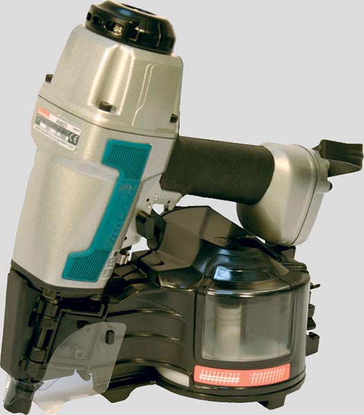 Pneumatická klincovačka pre klince s dĺžkou 45-65 mm, dobre vyvážená, bezpečnostná spúšť, nastaviteľný odvod vzduchu, ochranné okuliare a prepravný kufrík, kapacita zásobníka 200 - 300 ks, tlak 4,4 - 8,3 bar, hmotnosť 2,9 kg