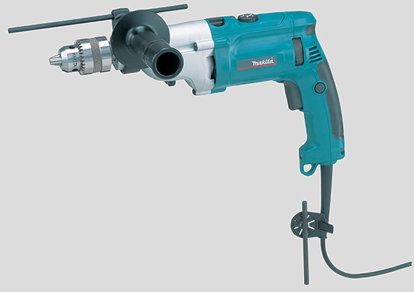 Elektronická príklepová vŕtačka so skľučovadlom s ozubeným vencom, príkonom 1010W, dvojstupňovou prevodovkou s telom z hliníkovej zliatiny a klznou spojkou, elektronická regulácia, dodáva sa s hĺbkovým dorazom a sytajnerom