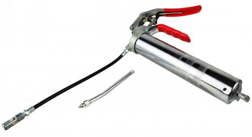 Mazacia pištoľ-dekalamitka, maznica 400 ml s príslušenstvom, hadička 300 mm, GEKO