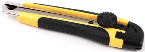 Nôž s ulamovacou čepeľou 18 mm, má zásobník s náhradnými čepeľami, kovové vedenie čepele a otočný uzáver čepele. Používa sa tiež na rezanie tapiet.