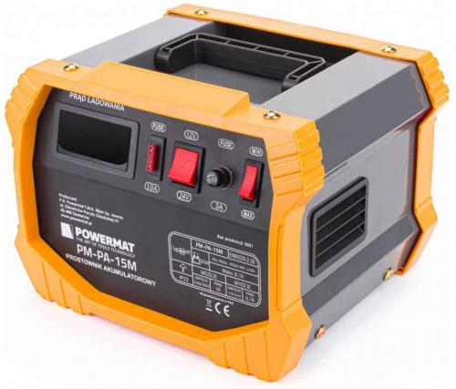 Technické dáta: Model: PM-PA-15M napájanie: 230 V / 50 Hz príkon: 150W podporovaná kapacita batérie: 25 - 105 [Ah] nabíjacie / štartovacie napätie: 12V / 24V maximálny nabíjací prúd: 12 V - 9 A maximálny nabíjací prúd: 24 V - 6 A nabíjací prúd min: 12 V - 4 A maximálny nabíjací prúd: 24 V - 6 A plus kábel: 1,7 m záporný kábel: 1,7 m napájací kábel: 1,53 m rozmery zariadenia: 210 x 290 x 230 [mm] celková hmotnosť: 5,1 kg Vybavenie: usmerňovač 2x náhradná tanierová poistka 1x sklenená poistka box Návod na použitie: Vlastnosti Kvalitná automatická a presná nabíjačka batérií POWERMAT PM-PA-15M. Skvele funguje v profesionálnych službách a autodielňach aj v domácich garážach. Zariadenie je možné nabíjať 12V a 24V. Vstavaný ampérmeter inštalovaný v zariadení ukazuje úroveň nabitia batérie a spotrebu energie pri naštartovaní vozidla. Hlavný panel Usmerňovač má digitálny ampérmeter, nabíjací spínač 12V / 24V, prepínač nabíjacieho prúdu a dve ochrany (plochá a sklenená poistka). Funkčnosť Zariadenie má možnosť konfigurovať intenzitu nabíjania. Možnosť konfigurácie nabíjacieho prúdu v dvoch hodnotách. Zadný vypínač nabíjania poskytuje dodatočnú bezpečnosť pri pripojení nabíjačky k elektrickej sieti. Má držiaky káblov, čo dáva väčšiu mobilitu celému zariadeniu. LCD digitálny displej Veľký LCD displej informuje užívateľa o aktuálnom toku elektriny v priebehu operácie. Vďaka tomu vieme presne a jednoducho prispôsobiť aktuálne nastavenia aktuálne nabitej batérii. Okrem toho je zariadenie vybavené pevnými prípojkami napájania a ľahko dostupnými poistkami. Transportná rukoväť Pohodlná rukoväť na držanie nabíjačky v ruke uľahčuje jej prenášanie kdekoľvek.