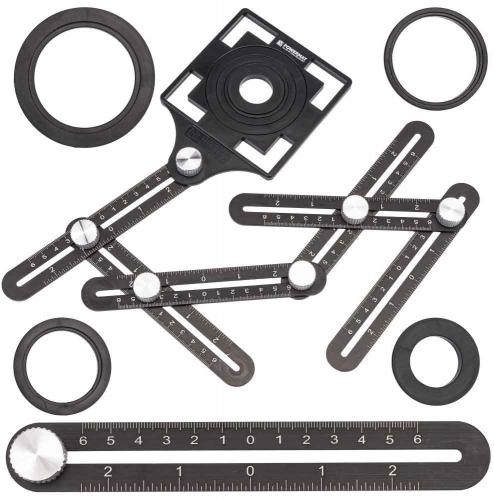 Nastaviteľná hliníková šablóna. Používa sa na mapovanie tvarov, otvorov na dlaždiciach, kameniny, glazúre, skle a dreve.