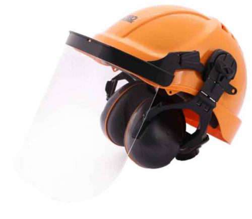 Polykarbonátový štít na tvár. Atest CE.Snr 26dB. Prilba je vyrobená z kompaktného polyetylénu HDPE, má všetky atesty prilby, chráničov sluchu a ochranného štítu na tvár.
