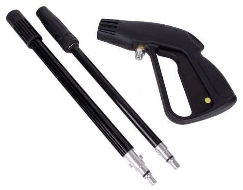 V balení nájdete dve rozdielne nadstavce s tryskami. Jeden je hrubší, druhý užší, ktorý poskytuje ešte vyšší tlak prúdu vody. Takto si sami môžete vybrať s akým tlakom budete pracovať. Tieto nadstavce sú ľahko odnímateľné, takže údržba pištole Vám nebude robiť žiadny problém. Pištoľ je vybavená rukoväťou, ktorá pohodlne padne do každej ruky a zároveň zaručí bezpečnú prácu vo všetkých pozíciách, ktoré vystriedate pri čistení.