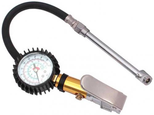 Pištoľ na plnenie pneumatík s manometrom.