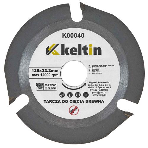 Rezný kotúč na drevo. Vyrobený zo zliatiny mangánovej ocele Mn65, vysoko odolný voči teplote a deformácii. Zuby s karbidovými hrotmi umožňujú hrubé rezanie dreva a materiálov na báze dreva. 125 mm kotúč je určený na použitie s pílami a drážkovačmi do stien, ktoré majú dodatočný bezpečnostný kryt. Nie je určený na použitie s uhlovou brúskou.