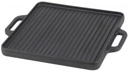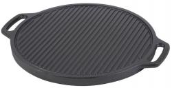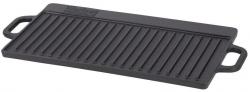 Obojstranná grilovacia platňa je vyrobená z liatiny. Pruhovaná strana je vhodná na grilovanie mäsa, rýb, klobás, špekačiek. Hladká strana na pečenie zeleniny, príloh a iných pochutín. Okraj je vyvýšený a zabraňuje odtekaniu masti na gril. Platňa má 2 pevné rukoväte pre lepšiu manipuláciu. Používanie je veľmi jednoduché. Na platňu nalejte trochu oleja podľa potreby a umiestnite Vami požadované jedlo. Po príprave nechajte platňu vychladnúť a dôkladne ju umyte. Môže sa používať aj na plynovom sporáku alebo v rúre.