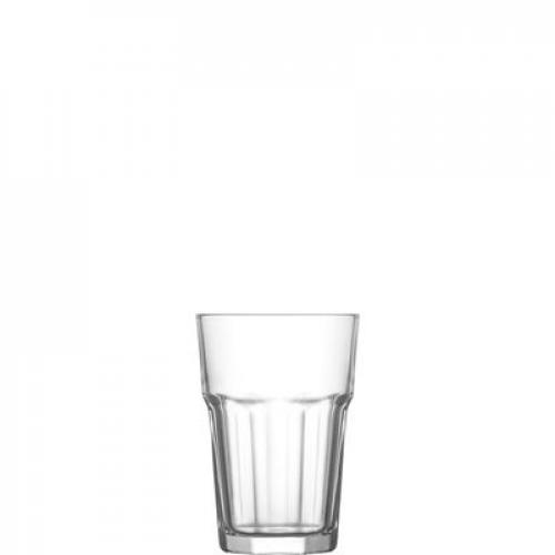 Sklenený rebrovaný pohár na vodu Aras je v rozmere 83x121 mm s objemom 365 ml s možnosťou umývanie v umývačke riadu, využiteľný v každej domácnosti.