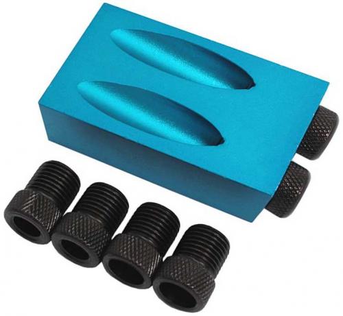 Prípravok na presné vŕtanie spojovacích otvorov. Vytvára otvory pod uhlom 15 °. Sada obsahuje púzdra na vŕtanie otvorov 6 mm, 8 mm, 10 mm.