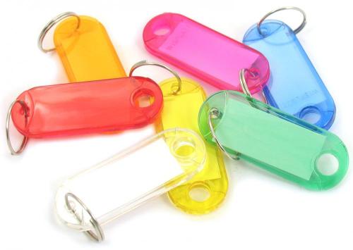 Plastový identifikačný odznak s kľúčenkou. Priehľadná, obojstranná kľúčenka, možnosť personalizácie obojstranným nápisom.