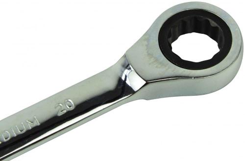 Račňový očkoplochý kľúč leštený s odolným chrómovým povlakom na ochranu pred koróziou.