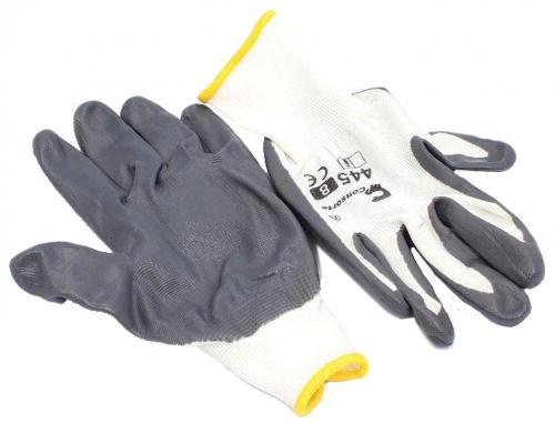Rukavice z textilného materiálu potiahnuté nitrilom. Veľmi odolný a pohodlný. Majú elastickú manžetu. Veľkosť 9.