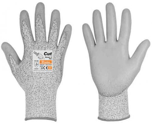 Pletené rukavica z polyetylén-spandexu s nylonom a skleneným vláknom - Steh 13. Polyuretánová vrstva s hladkou štruktúrou Výhody protirezaných rukavíc CUT COVER 3: - predĺžená manžeta pre dodatočnú ochranu - mikroporézna, oderu odolná, Polyuretánový záter na úchopovej časti rukavice - mimoriadne ľahké a priedušné, zaisťujú najvyšší komfort a hmatovú citlivosť